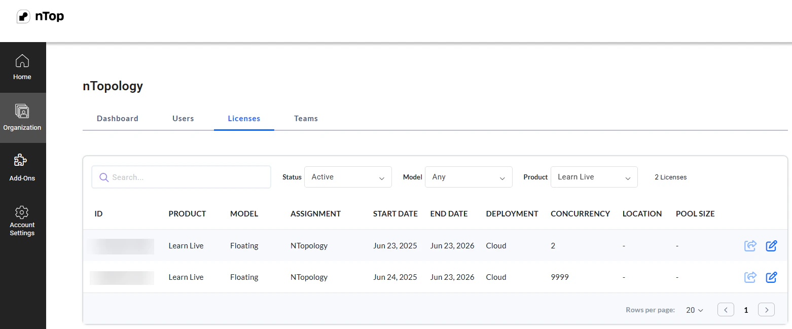 If you are an Org Admin who has purchased a Named-User or Floating Learn Live licence, it will appear similar to nTop and nTop Automate licenses in your Organization Dashboard. You can assign it similarly to other licenses and follow instructions here (Getting Started with Floating Licenses)