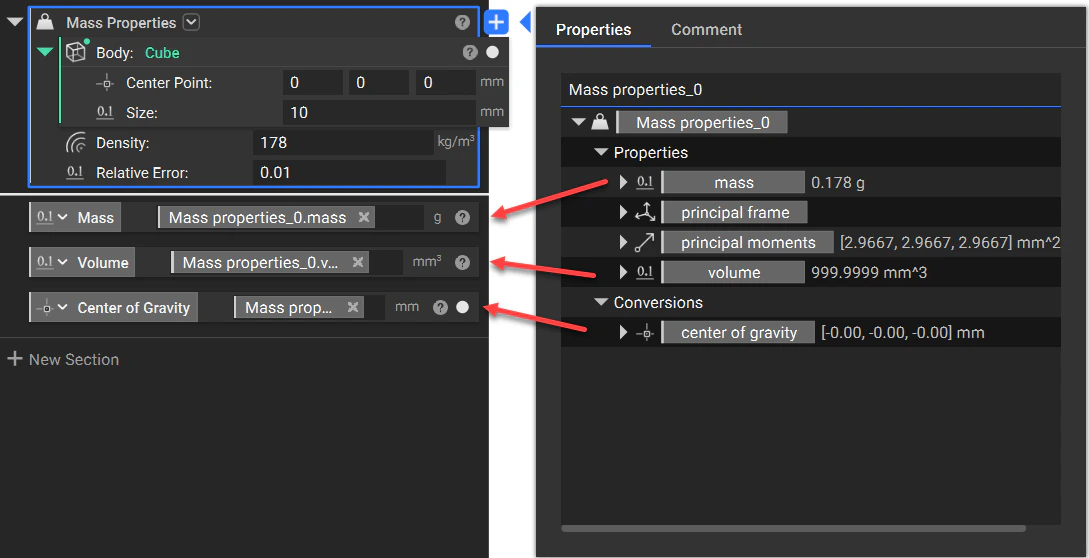 Can I turn mass properties into variables? Like volume or center of gravity?Applies to: