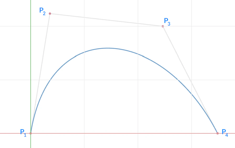 • The shape of the curve is controlled by four points: Point 1 (P1), Point 2 (P2), Point 3 (P3), and Point 4 (P4).