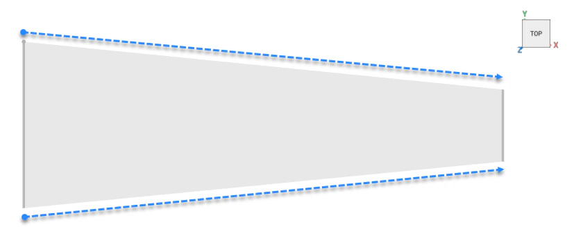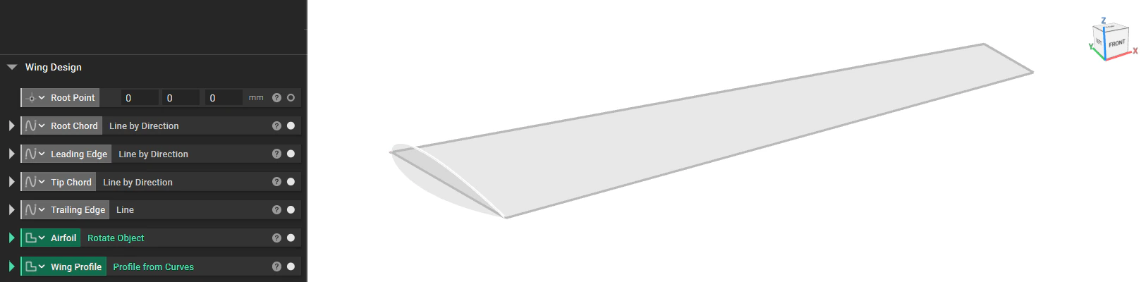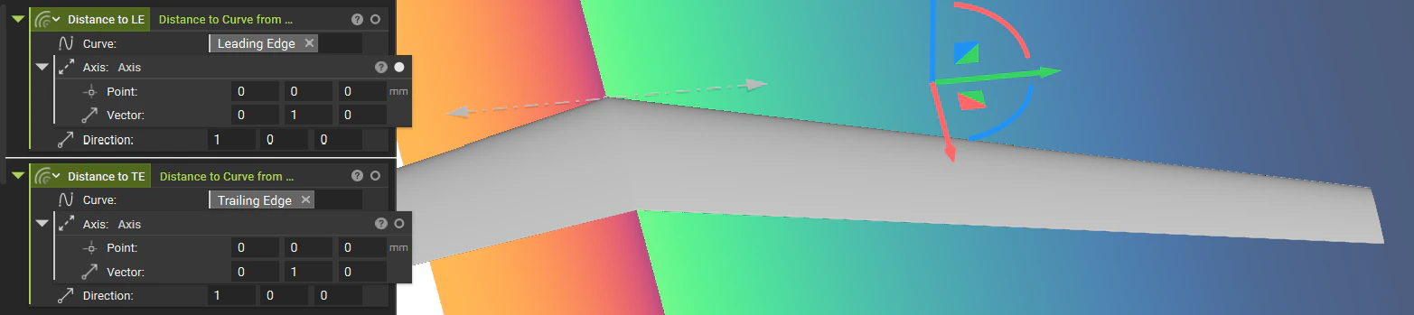 - Next, use the Line by Direction block or other line-creation methods to create the wing’s Leading Edge and Trailing Edge guide curves. These curves define the wing’s span, sweep, and taper.