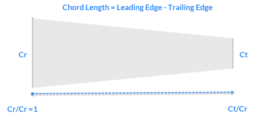 - We must create an X field that ensures that the chord length varies from Root Chord Length to Tip Chord Length in the same taper ratio as the wing.