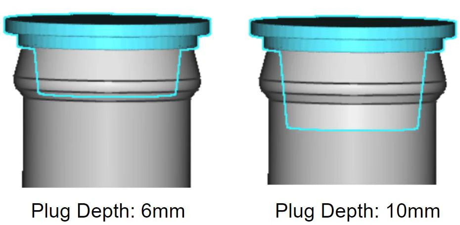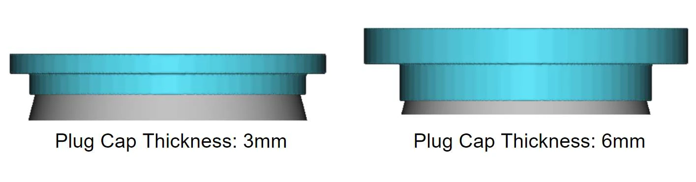 The thickness of the plug’s cap is measured from the hole’s flush surface.