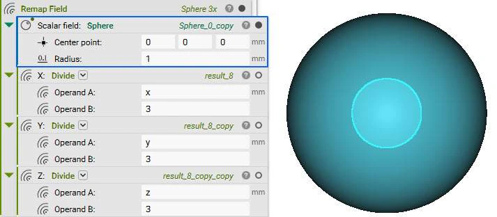 Let’s use the Remap Field block to magnify a sphere.- Add a Sphere block