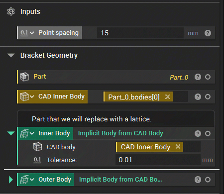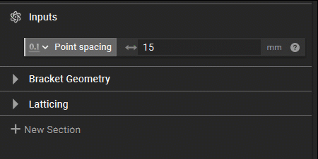 Before importing your CB into another notebook, you could change the variable type. For instance, point spacing is a scalar variable in the example below. However, if you intend to have varying point spacing and uniform values, you must change the type to a scalar field. To do this, click the icon and change it to the right variable type. Once you export this notebook, you will not be able to change that type, so we recommend changing the variable type to the broadest option.