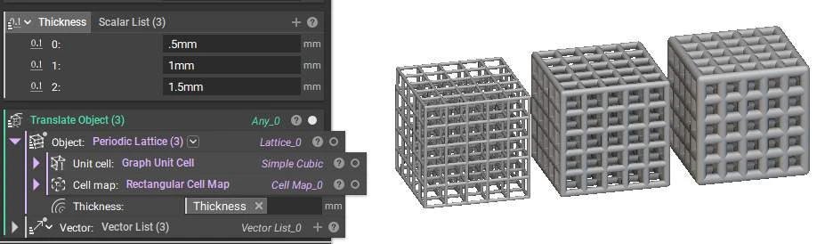 When applicable, blocks can accept list inputs instead of singular inputs. The block will then become a listed block of the same length as the input list. We refer to this as list processing—it can be useful for running through a series of input options, as shown below.