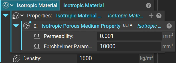 - Add an Isotropic Porous Medium Property block and define a Permeability and Forchheimer Parameter.
