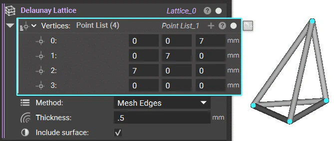 - Mesh edges: Creates lattice beams along the mesh edges.