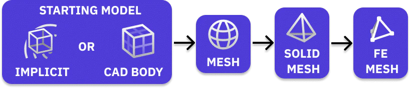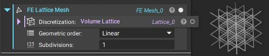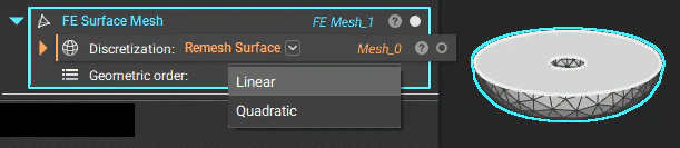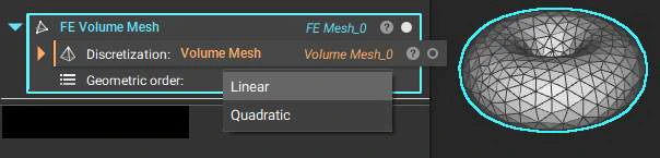 The FE Volume Mesh block places FE elements over volume mesh elements. The geometric order defines the number of nodal elements placed in the mesh elements.