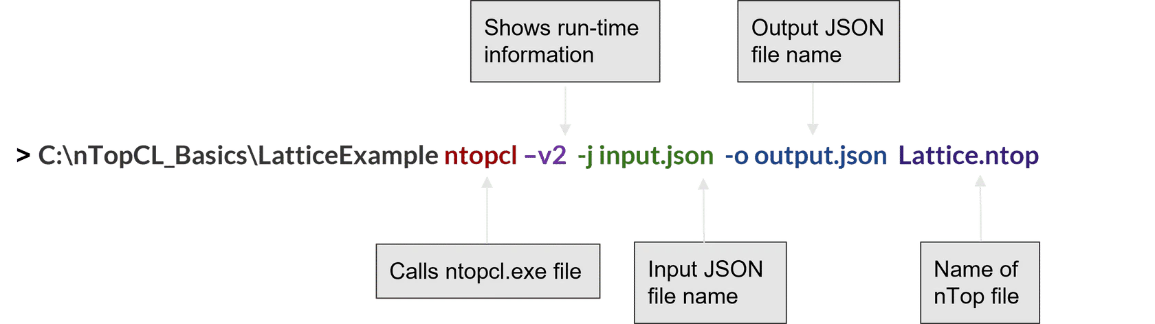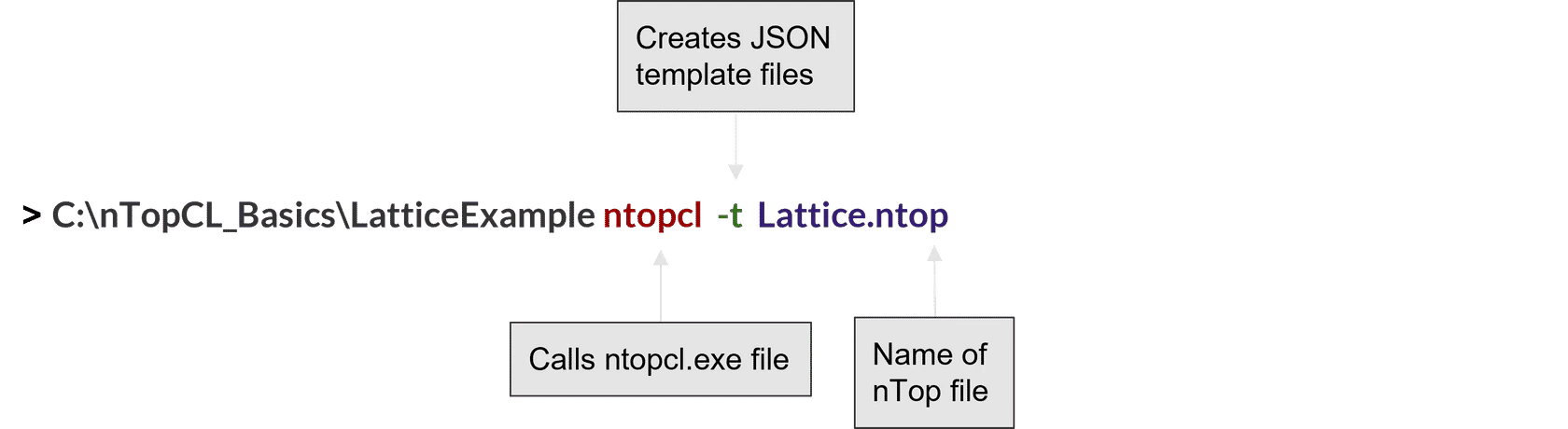 The recommended method for more complex use is to work with a JSON file containing input values, which supports boolean, integer, scalar, text, file path, vector, point, and enum input types. You can find more information on each specific type under Documentation → Using nTopCL → Input. You can write all your input variables in a single JSON file. The template for this can be automatically generated in the command line using the -t flag with the ntopcl call, which will place one input and one output JSON template file in your directory.