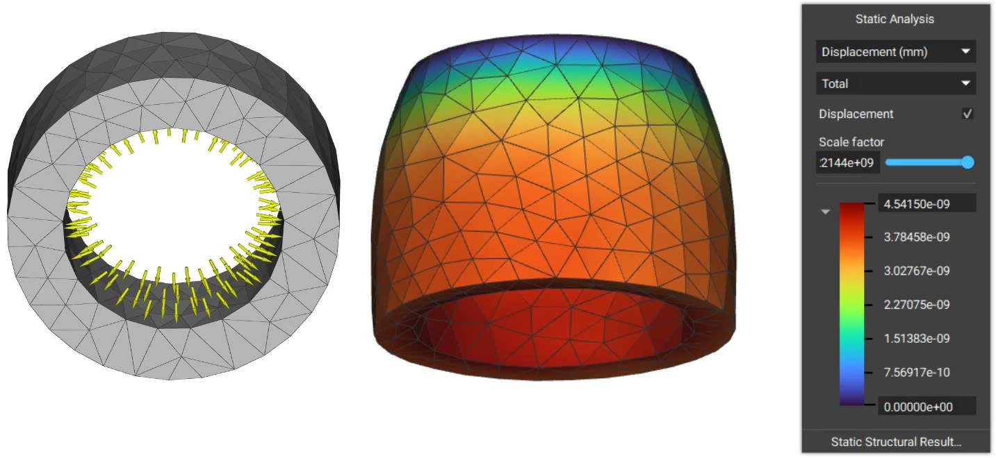 The Acceleration Load block applies an acceleration load to a selected region. The applied force is calculated by multiplying the acceleration vector by the element masses and distributing it over the nodes. You can use this block to add gravity as a load case.