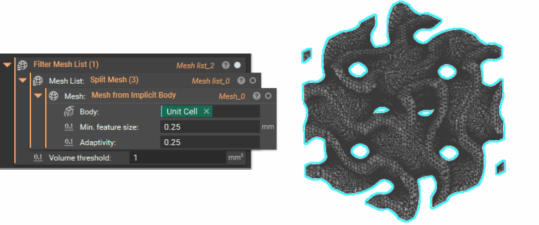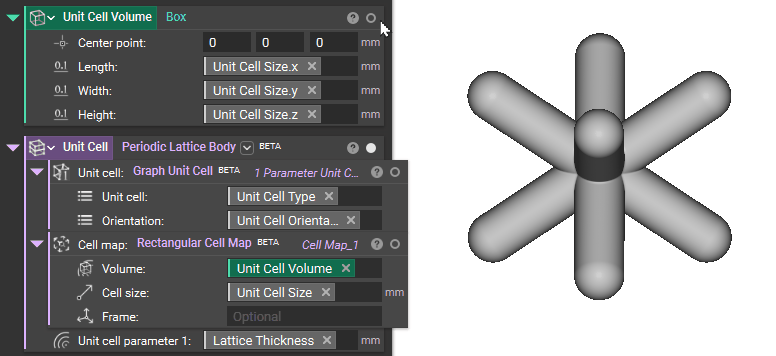 Start by creating your unit cell volume Box and unit cell based on the cell size, type, orientation, and thickness of your lattice structure.