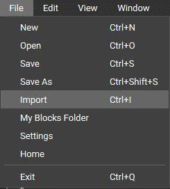 Use the search bar and type in ‘Import’. All of the import options will pop up, allowing you to choose the block you need. These blocks can also be found in the Utilities tab in the Ribbon.