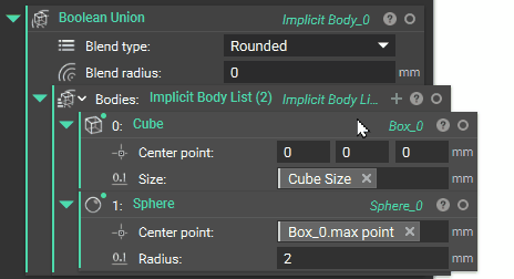 Most workflows in nTop will begin with importing a CAD or mesh object and converting it to an Implicit body, which are all done through adding specific blocks to the Notebook. To perform operations in nTop, you can add Blocks to the Notebook via the Ribbon or the Search Bar: Method 1: Click on Block icons or select from the drop-down list in the Ribbon. Show/hide the ribbon with Ctrl+D