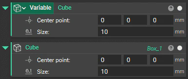 You can make any block or parameter in the Notebook into a variable. By declaring a block a variable, all of its components can be changed quickly and parametrically. An entire Notebook of functions can automatically be computed and rebuilt by changing inputs in the variable. Variables allow for quick and easy organization and understanding of your Notebook since the variable blocks don’t get nested within another block. A block variable looks different from a regular block. The block name moves to the left and sits on top of the block color. Below you can see a variable vs. a regular block.