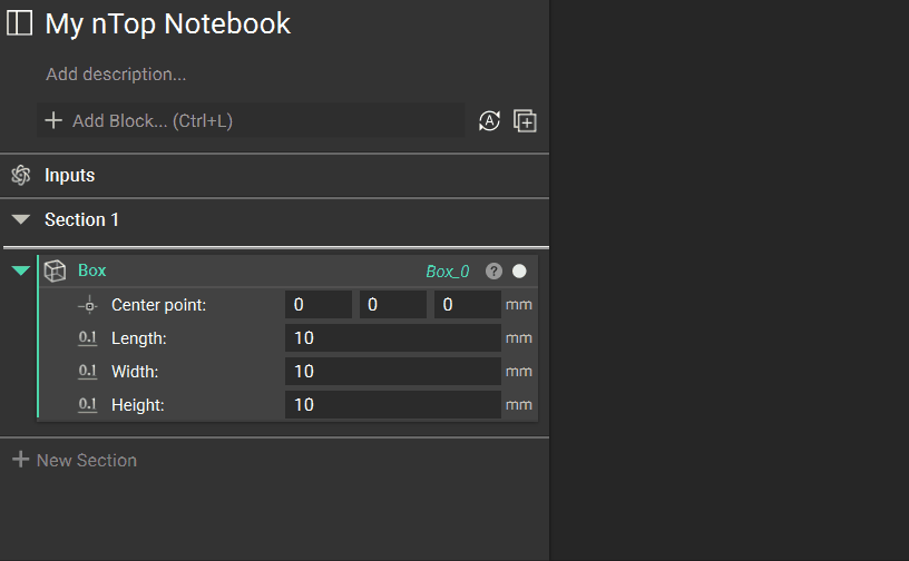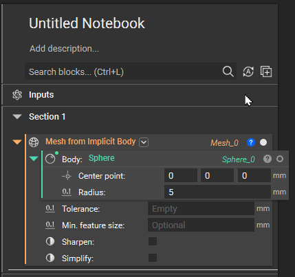 You may have noticed that any blocks that you have completely filled in run automatically. This happens by default after you either press enter or click outside of the block after satisfying all inputs. You can stop block autorun for the entire Notebook or put breaks on specific blocks. Toggle off Autorun Mode using the button next to the search bar. This will stop all blocks in the notebook from automatically computing. After updating the inputs, you can run individual blocks by clicking on the green ‘Rebuild Block’ symbol that pops up next to the Info button at the block’s top right corner.