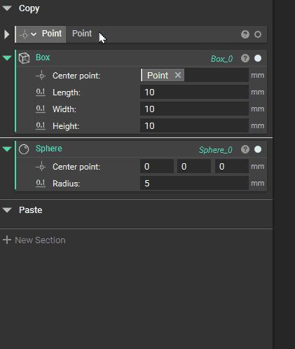 Right-click on a block to see the three options for copying or duplicating it: ‘Copy Selection’ or Ctrl + C allows you to create copies of one or multiple selected blocks, which you can paste at any location where the white line is placed within the same Notebook or in a different Notebook. To select multiple blocks, hold Ctrl. ‘Paste’ or Ctrl + V brings only the selected blocks to the new Notebook. ‘Paste with References’ or Ctrl + Alt + V brings all associated variables to the new Notebook.