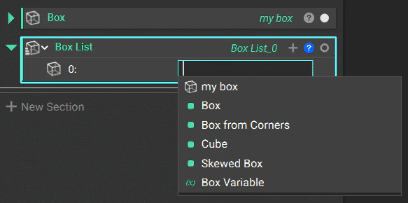 In addition to adding blocks from tabs in the ribbon and the search bar, there are two additional ways to add blocks to the Notebook. You can add a block directly into an input of an existing block in the Notebook using these methods. Only blocks with matching Types will be listed. Double-click in an input box. Blocks that are already in the Notebook will appear in the list first with an icon next to the name. This option is good for when you are not sure what block is needed next.