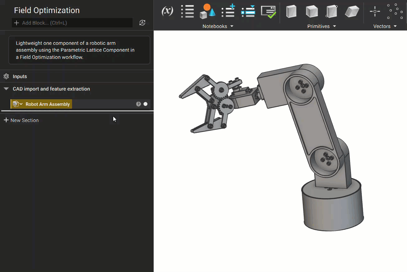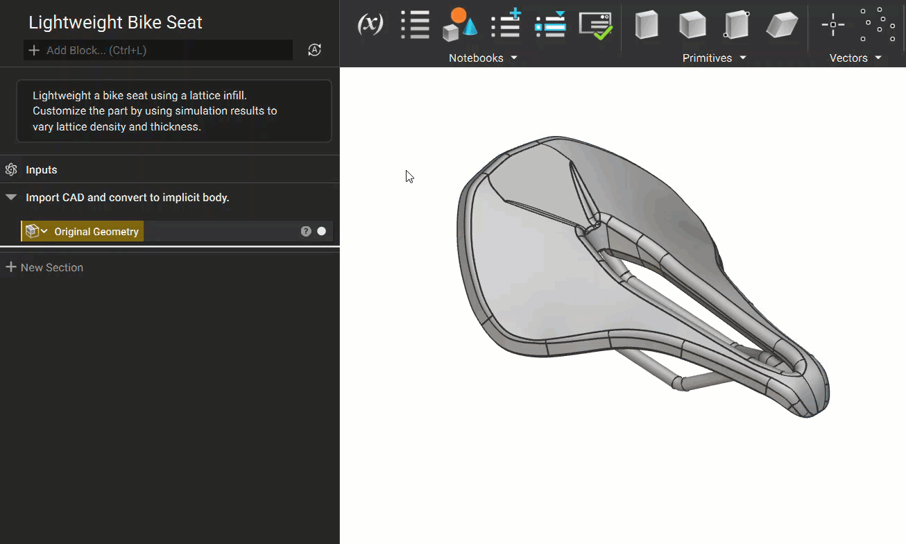 The quickest way to convert an imported CAD part into an implicit body is to extract directly from the part shown on the screen. Both the CAD Body and Face can be converted into implicit bodies as well as made into CAD Body or Face Variables. Double-Click to select the whole body, then right-click to either “Create CAD Body Variable” or “Convert CAD Body to Implicit Body”