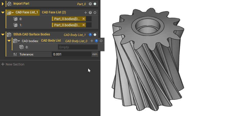 Turning Multiple CAD Faces into a Single Surface
