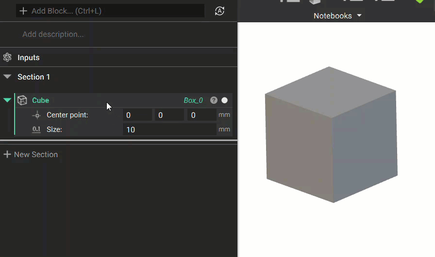 Right-click on the variable and select “Remove Contents”. Emptying a variable allows you to quickly change the contents of that variable while keeping the variable chip inserted as inputs in other blocks. In the example below, the contents of a Cube block variable are being removed. In order to allow any Implicit Body input, the variable block type icon needs to change from Cube to Implicit Body. To do this, click on the icon, and search for the desired input type. Changing the Sphere and Cube into variables allows you to quickly replace them without having to right-click and remove contents.