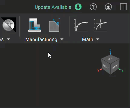 - Update Button: If you are not working in the latest version of nTop, you will see Update Available followed by a green download symbol. If you are on the latest version, the download symbol will appear gray.