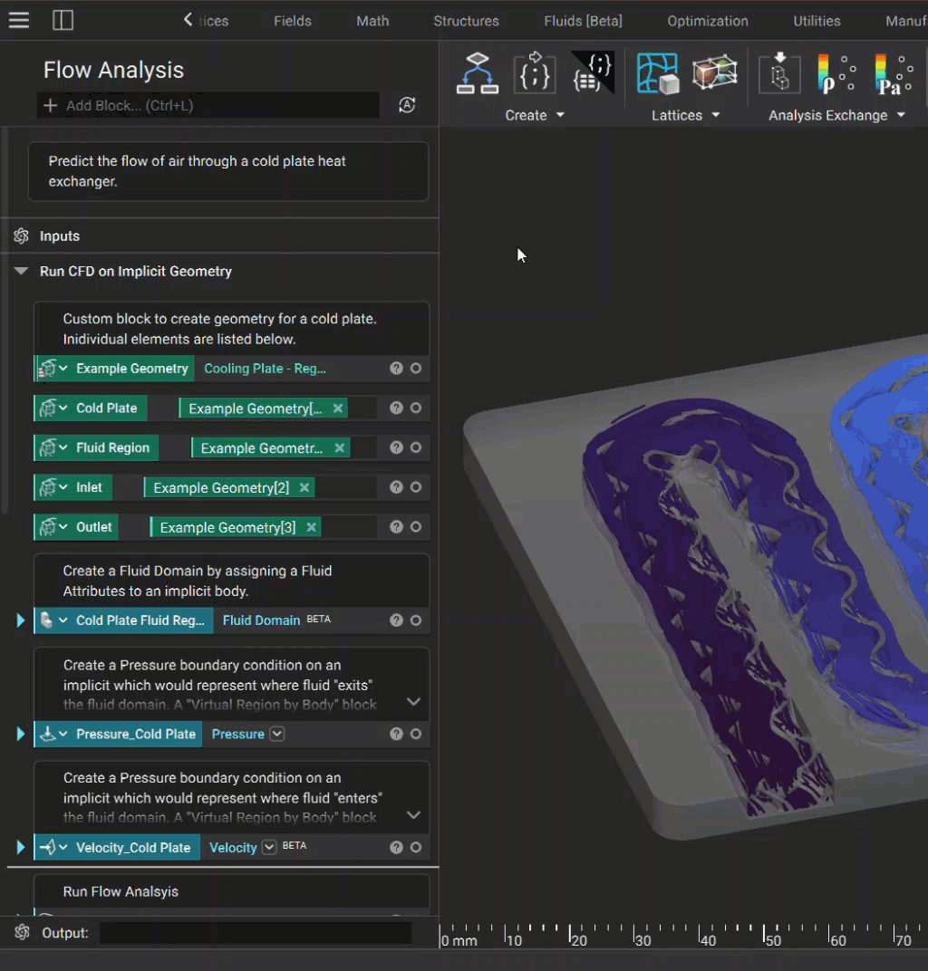 The ribbon contains blocks for performing different operations in nTop. You can navigate the ribbon by clicking on the tabs to change block menus. You can also use the arrows to reveal additional tabs.
