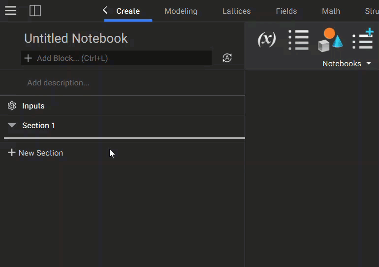 - Block Highlighting: Select a block from the notebook to highlight it in the notebook and viewport