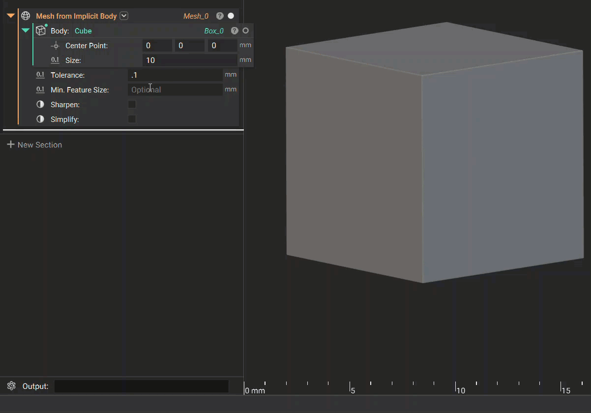 - Mode: Choose between performing a section cut on a specific body (Selection) or on all visualized bodies that intersect the plane (Global)
