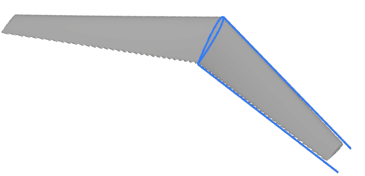 Twist the wings from root to tip. To drive lift distribution, we want to twist the wing. The result should look something like this, where the wing twists about the mid-curve from root to tip. Use the custom blocks and watch the videos below to identify the mid-curve and twist the wing.